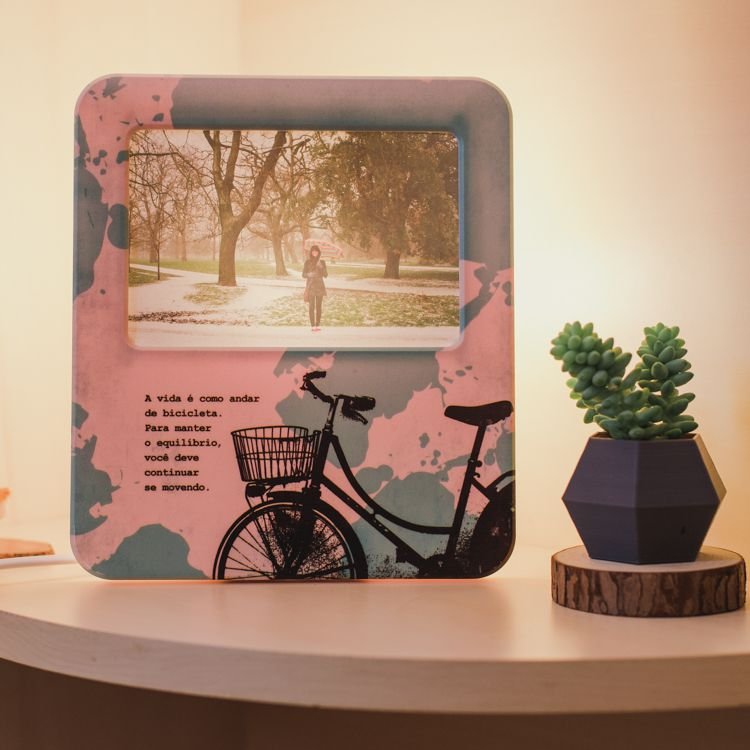 Luminária Porta Retrato Bike, para quem curti realizar vários passeios com sua bicicleta e lógico, registrar todos essas aventuras incríveis.