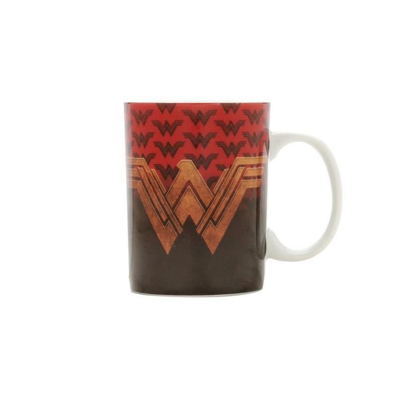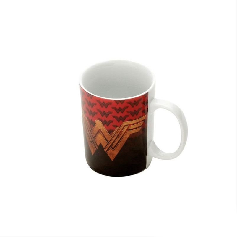 Mini caneca de porcelana Mulher Maravilha detalhes dourado, vermelho e azul, ótima para ser utilizada para tomar chá, café e decorar seu ambiente. Esta linda caneca também pode ser usada em ambientes de trabalho, decorando sua mesa de forma personalizada.