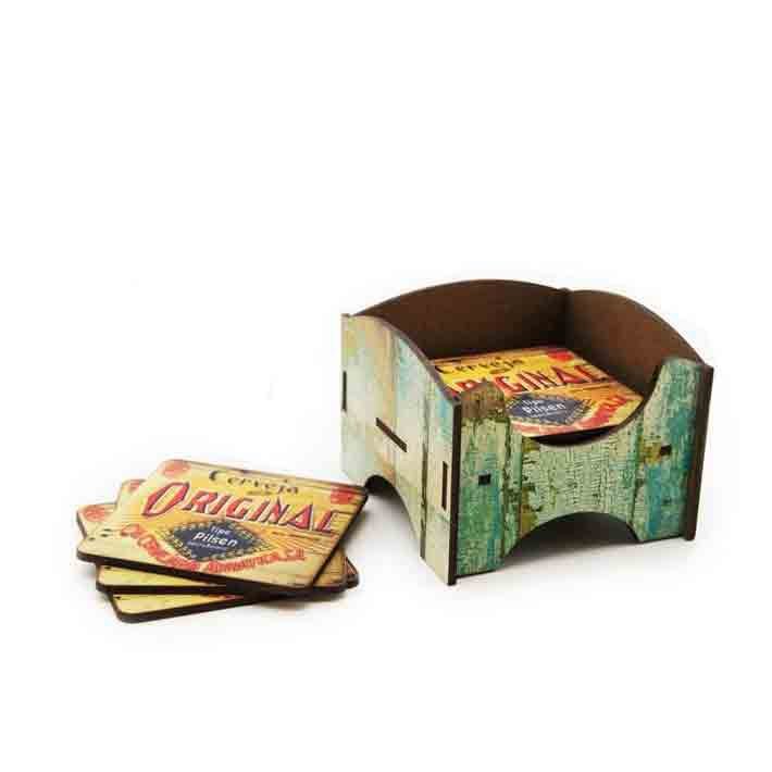 Contém 6 bolachas porta copos.